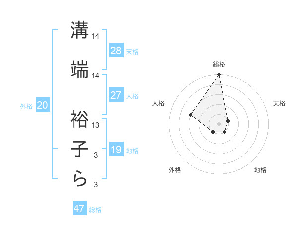 溝端 裕子らさんの総格は47画の5点!