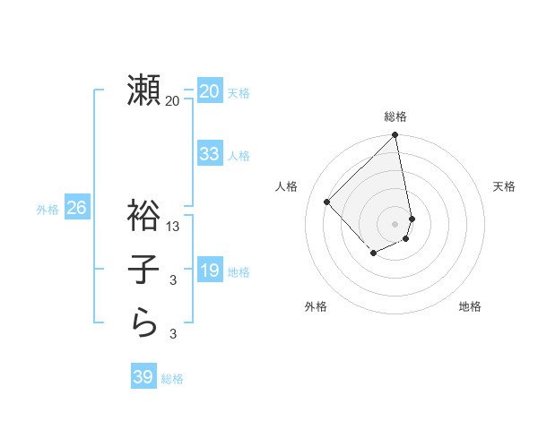 瀬 裕子らさんの天格は20画の1点!