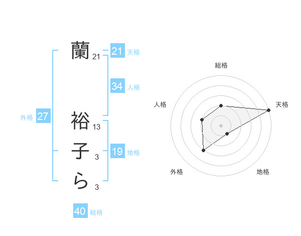 蘭 裕子らさんを姓名の画数から五運を鑑定