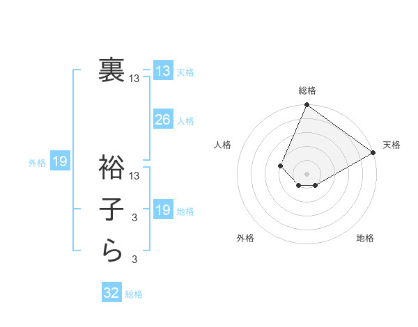 裏 裕子らさんを姓名の画数から五運を鑑定