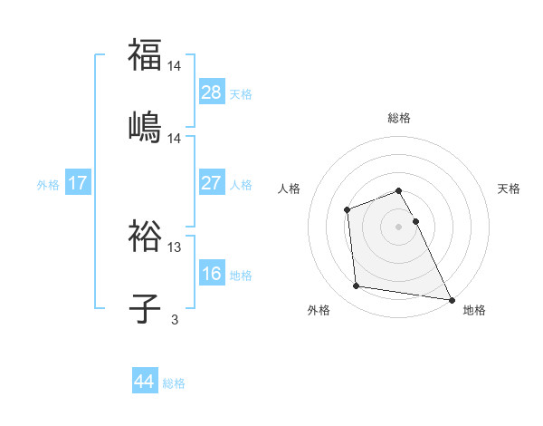 福嶋 裕子さんを姓名の画数から五運を鑑定