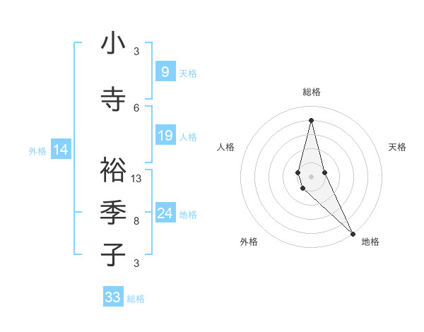 小寺 裕季子さんを姓名の画数から五運を鑑定