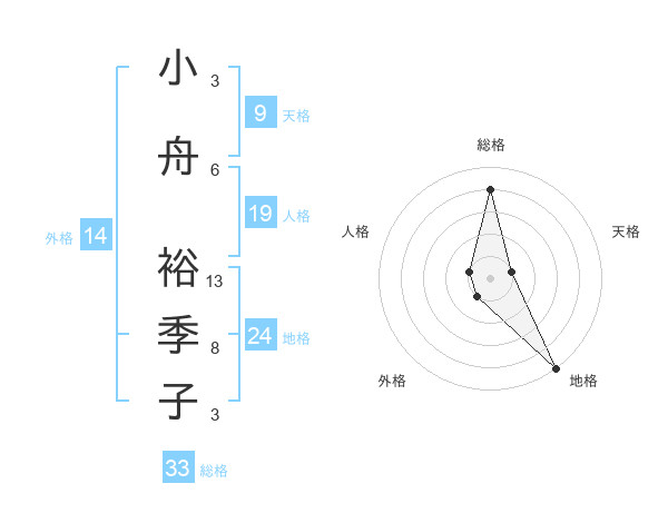 小舟 裕季子さんを姓名の画数から五運を鑑定