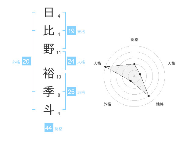 日比野 裕季斗さんを姓名の画数から五運を鑑定