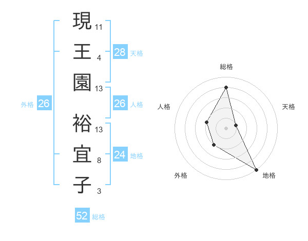現王園 裕宜子さんを姓名の画数から五運を鑑定