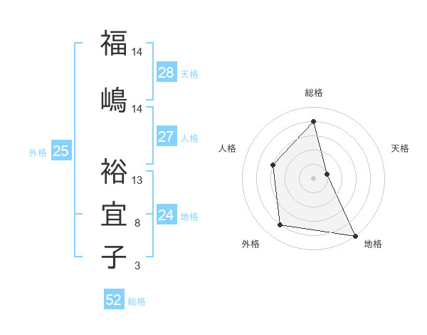 福嶋 裕宜子さんを姓名の画数から五運を鑑定