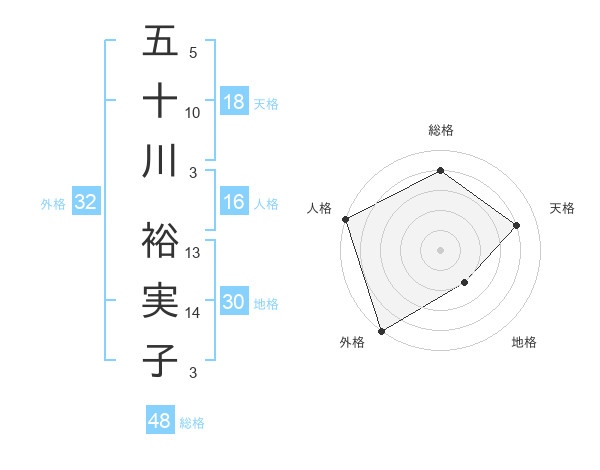 五十川 裕実子さんを姓名の画数から五運を鑑定
