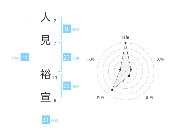 人見 裕宣さんを姓名の画数から五運を鑑定