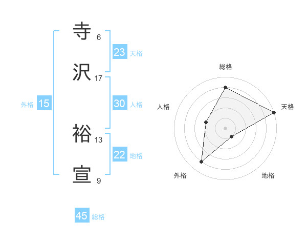 寺沢 裕宣さんを姓名の画数から五運を鑑定