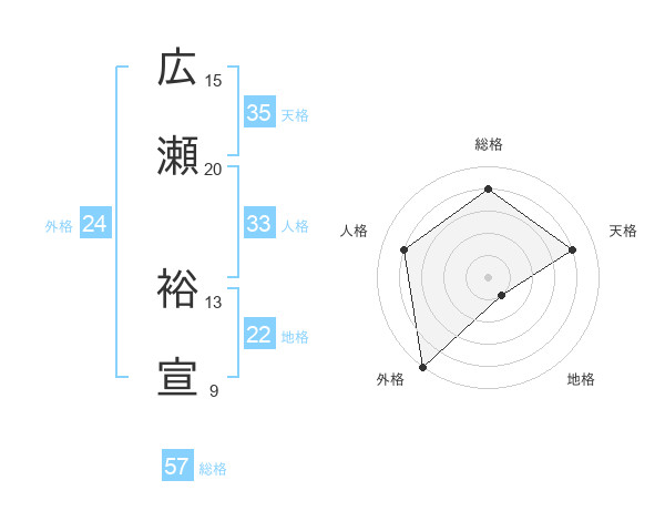 広瀬 裕宣さんの総格は57画の4点!