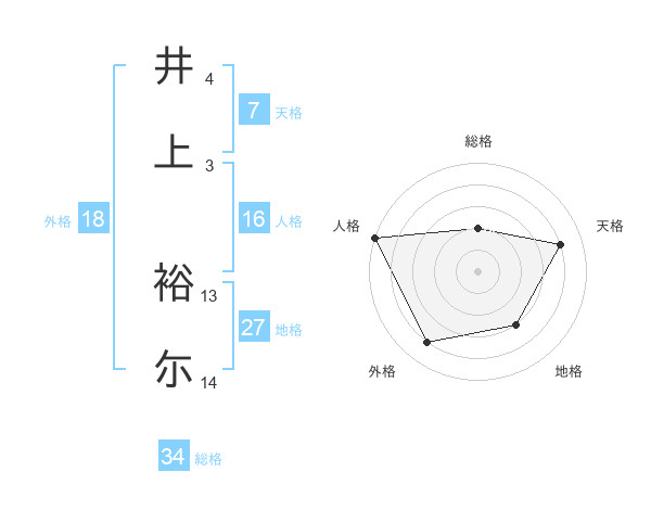 井上 裕尓さんの総格は34画の2点!