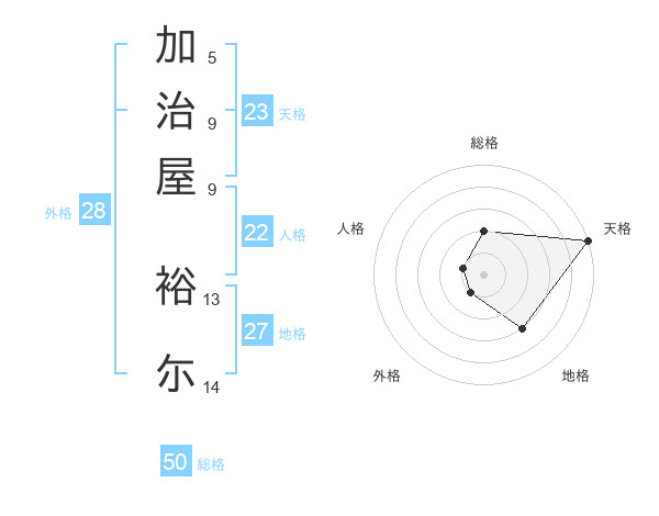 加治屋 裕尓さんの天格は23画の5点