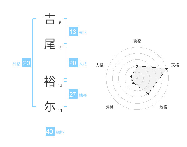 吉尾 裕尓さんを姓名の画数から五運を鑑定