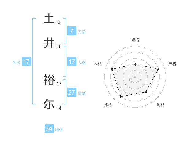 土井 裕尓さんの外格は17画の4点!