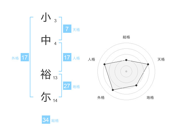 小中 裕尓さんの外格は17画の4点!