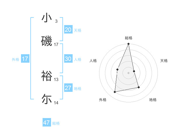 小磯 裕尓さんを姓名の画数から五運を鑑定