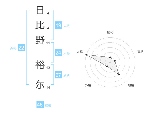 日比野 裕尓さんの天格は19画の1点!