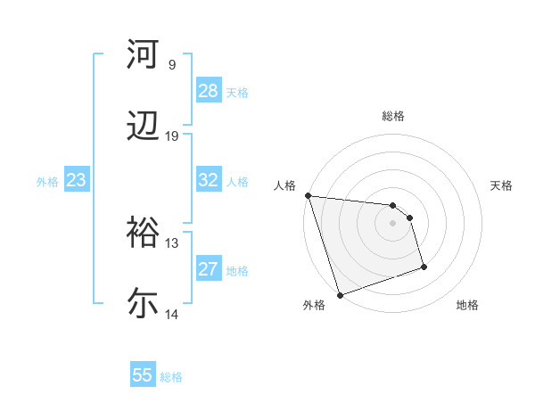 河辺 裕尓さんの総格は55画の1点!