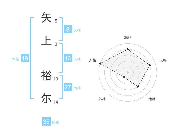 矢上 裕尓さんの総格は35画の4点!