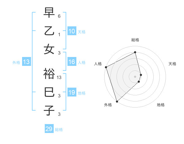 早乙女 裕巳子さんを姓名の画数から五運を鑑定