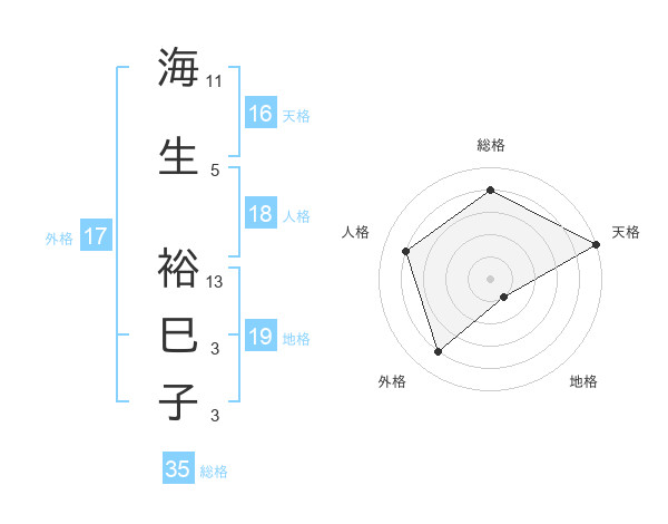 海生 裕巳子さんの総格は35画の4点!