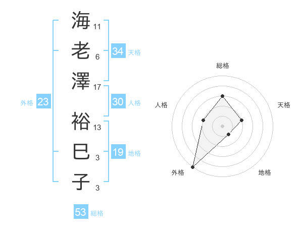 海老澤 裕巳子さんの外格は23画の5点!