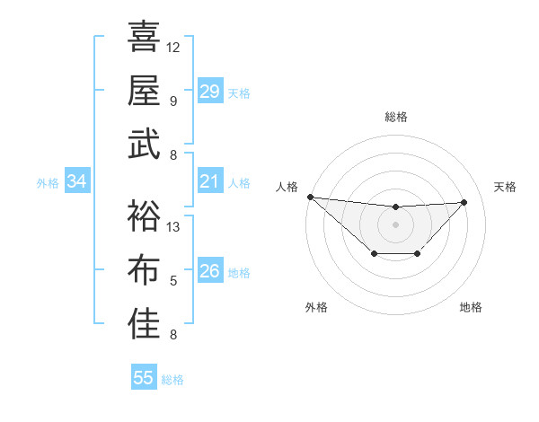喜屋武 裕布佳さんを姓名の画数から五運を鑑定
