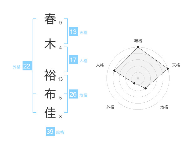 春木 裕布佳さんを姓名の画数から五運を鑑定