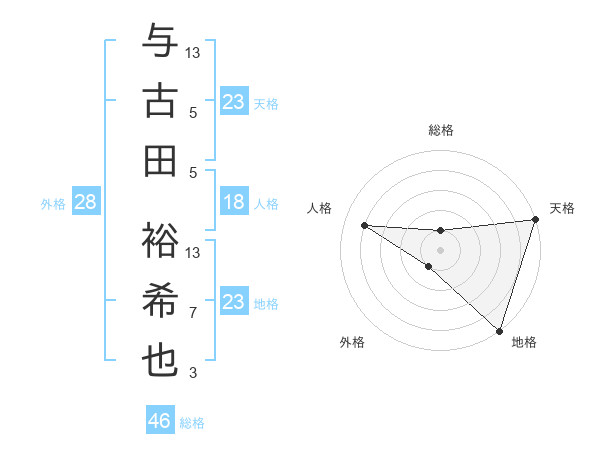 与古田 裕希也さんを姓名の画数から五運を鑑定
