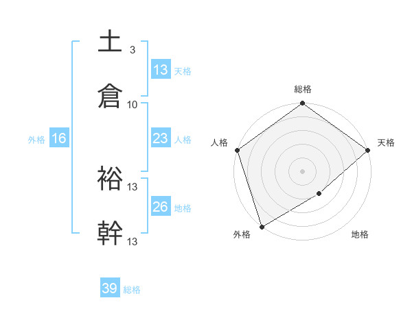 土倉 裕幹さんを姓名の画数から五運を鑑定