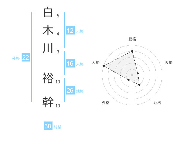 白木川 裕幹さんを姓名の画数から五運を鑑定