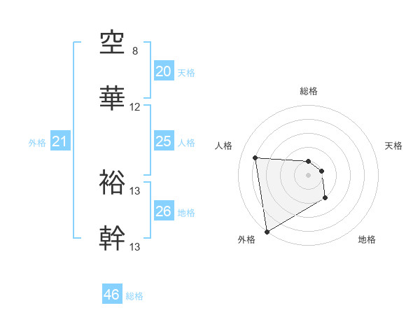 空華 裕幹さんの外格は21画の5点!