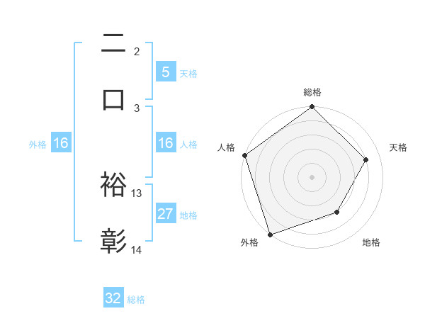 二口 裕彰さんの総格は32画の5点!