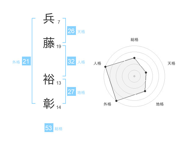 兵藤 裕彰さんを姓名の画数から五運を鑑定