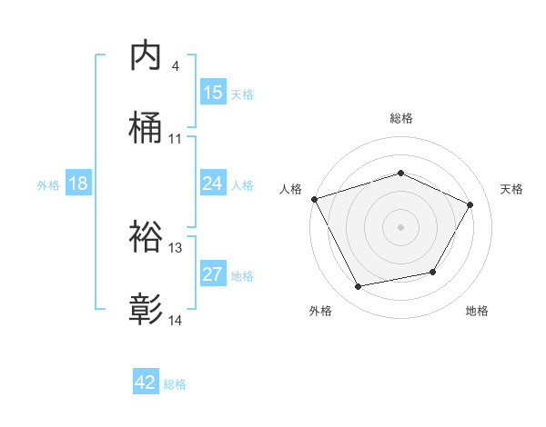 内桶 裕彰さんの天格は15画の4点!