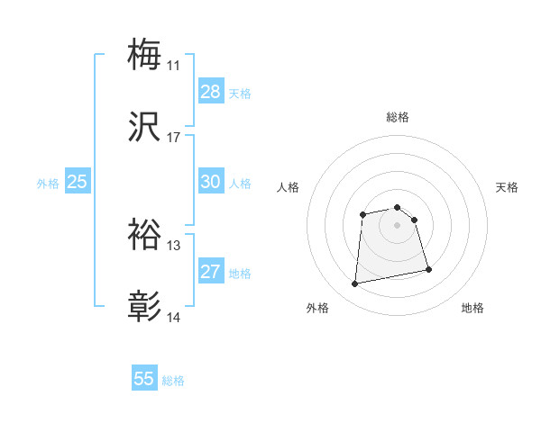 梅沢 裕彰さんの総格は55画の1点!