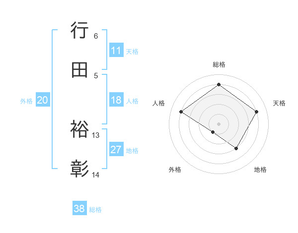 行田 裕彰さんを姓名の画数から五運を鑑定