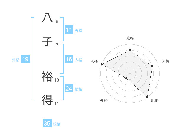八子 裕得さんの総格は35画の4点!