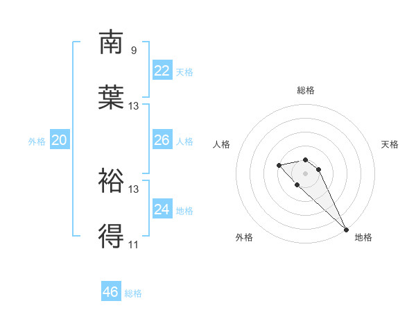 南葉 裕得さんを姓名の画数から五運を鑑定