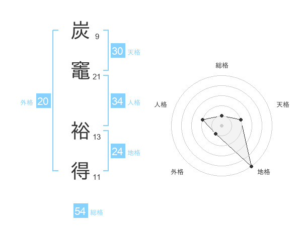 炭竈 裕得さんを姓名の画数から五運を鑑定
