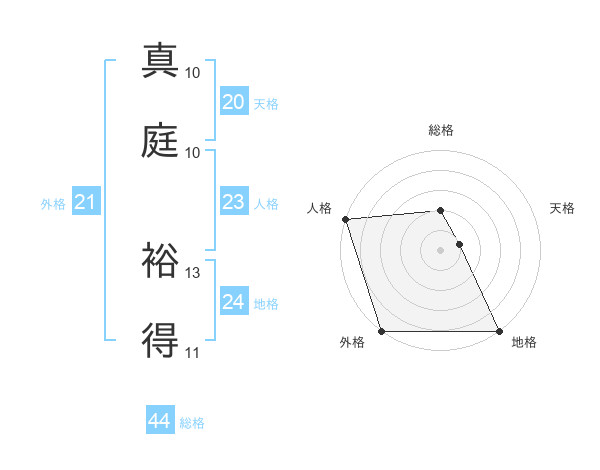 真庭 裕得さんの総格は44画の2点!