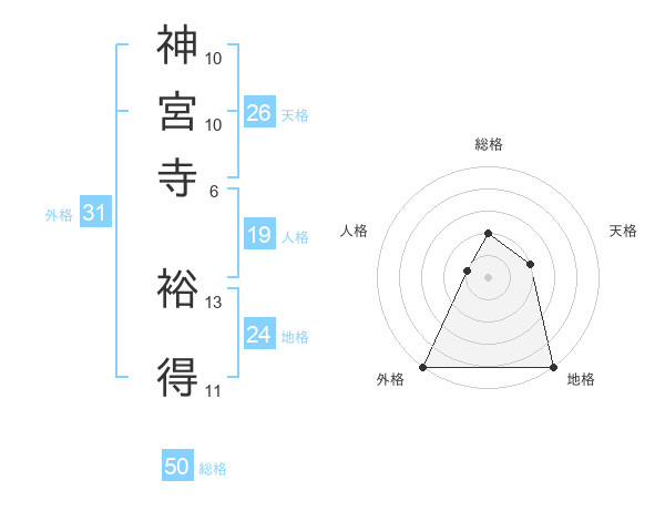 神宮寺 裕得さんの総格は50画の2点!