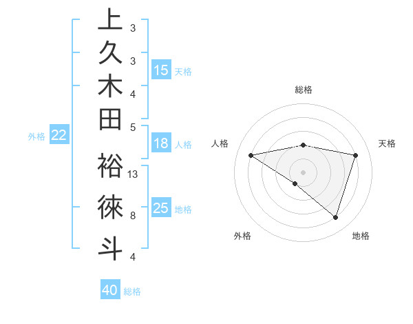 上久木田 裕徠斗さんの外格は22画の1点!