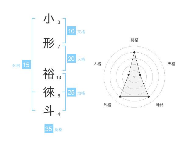 小形 裕徠斗さんを姓名の画数から五運を鑑定