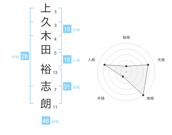 上久木田 裕志朗さんを姓名の画数から五運を鑑定