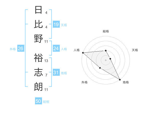 日比野 裕志朗さんを姓名の画数から五運を鑑定