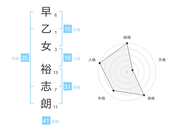 早乙女 裕志朗さんを姓名の画数から五運を鑑定