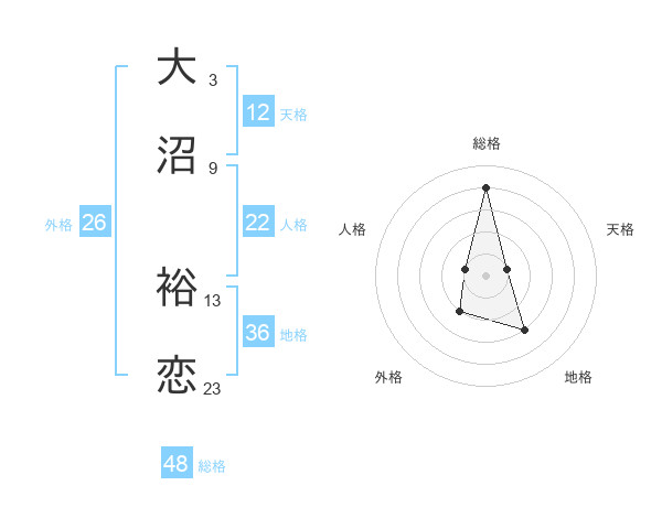 大沼 裕恋さんの総格は48画の4点!