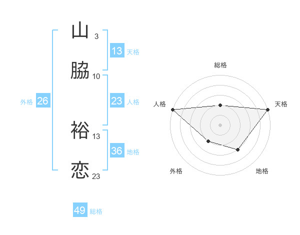 山脇 裕恋さんの天格は13画の5点