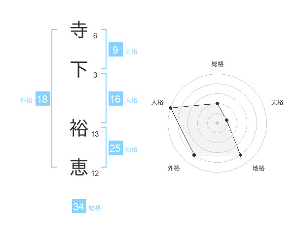 寺下 裕恵さんの地格は25画の4点!